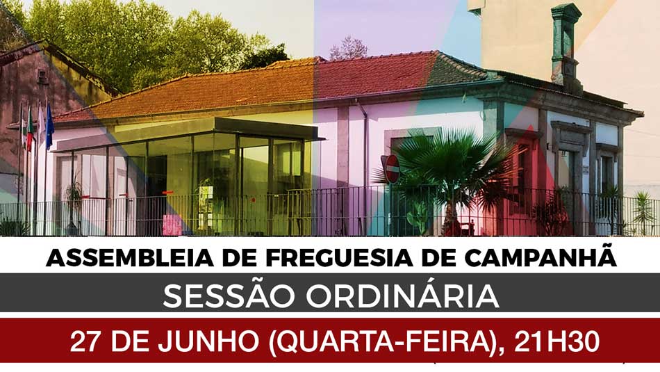 FAZ PÚBLICO que, em conformidade com a competência que lhe confere a, Alínea b) do n.º 1 do Artigo 14º. da Lei 75/2013 de 12 de Setembro, a Assembleia de Freguesia de Campanhã vai realizar a Sessão Ordinária no próximo dia 27 de SETEMBRO (Sexta-feira), com início às21H30 no Auditório da Freguesia de Campanhã, sito à Rua Ferreira dos Santos, 57 com a seguinte ordem de trabalhos: