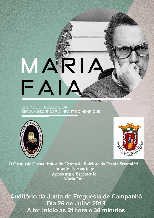 O Grupo de Cavaquinhos do Grupo de Folclore da Escola Secundária Infante D. Henrique vai apresentar o espetáculo "Maria Faia" no auditório da Junta de Freguesia de Campanhã.