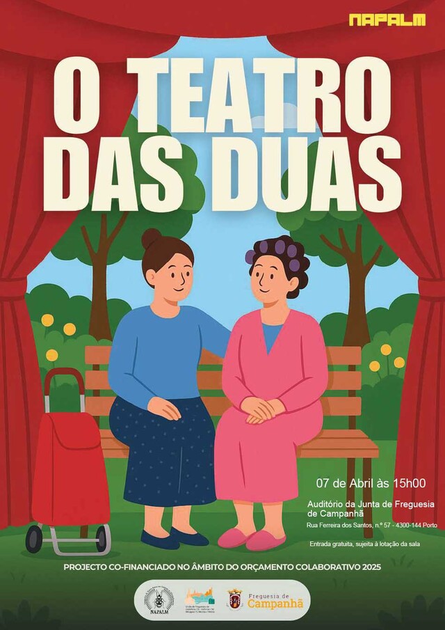 A Junta de Freguesia de Campanhã vai acolher no seu auditório, no próximo dia 7 de abril de 2026, pelas 15h00, a peça de teatro “O Teatro das Duas”, promovida pela NAPALM.