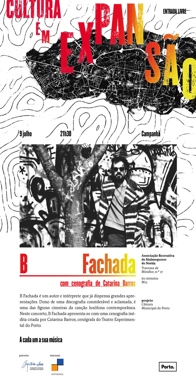 A Associação Recreativa de Malmequeres de Noêda vai receber B Fachada, no próximo sábado, 09 de Julho, às 21h30, no âmbito do Projecto Cultura em Expansão, uma iniciativa da Câmara do Porto. Trata-se de um concerto envolvido por uma cenografia inédita criada por Catarina Barros, cenógrafia do Teatro Experimental do Porto.