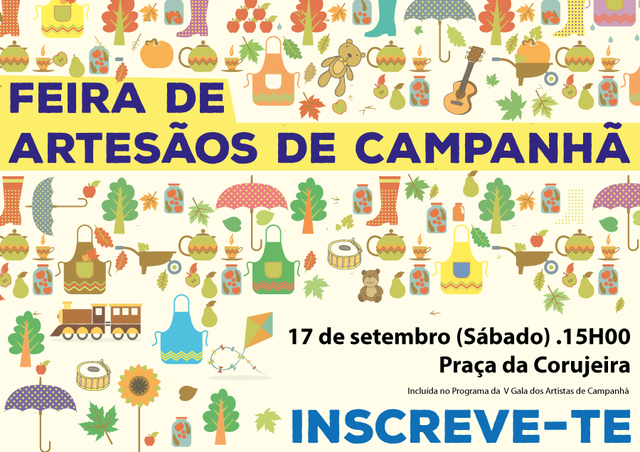 Convidamos os artesãos de Campanhã a estarem presentes com os seus trabalhos na V Gala dos Artistas de Campanhã, no dia 17 de setembro pelas 15h00 na Praça da Corujeira.