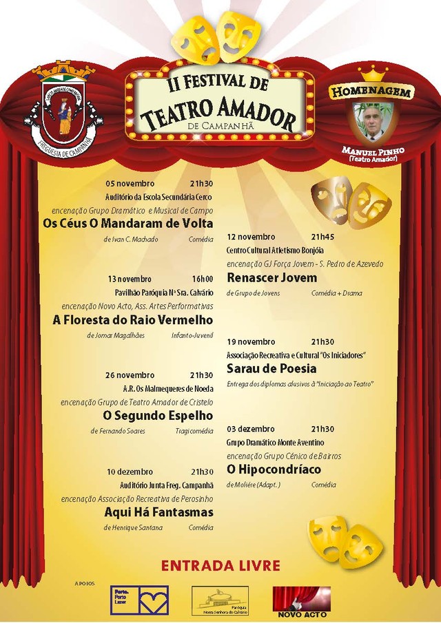 No dia 05 de Novembro, às 21h30, inicia o II Festival de Teatro Amador de Campanhã que arranca com uma comédia , " Os Céus o Mandaram de Volta" e acontecerá no auditório da Escola Secundária do Cerco.