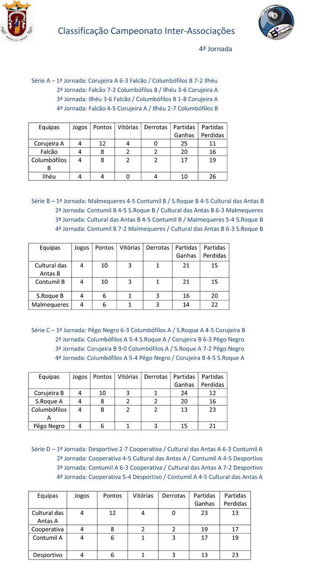 Classificações 4ª Jornada Campeonato Bilhar / Snooker Classificações da 4ª Jornada do Campeonato Inter Associações. Escola de Xadrez com mais jogadores < Anterior 1a Jornada do Torneio de Bilhar de Campanha 2014 Seguinte >