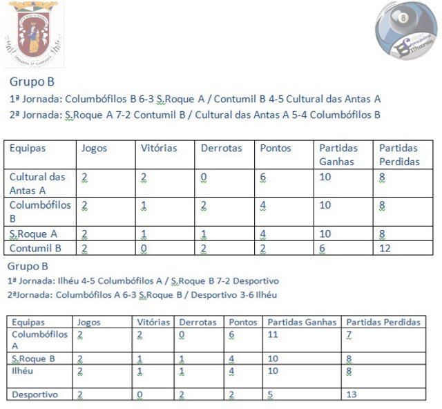 Resultados 2ª Jornada - 2ª fase Grupo B - Campeonato Bilhar / Snooker Alunos da Escola de Xadrez de Campanha em torneio < Anterior Resultados 2ª Jornada - 2ª fase Grupo A - Campeonato Bilhar / Snooker Seguinte >