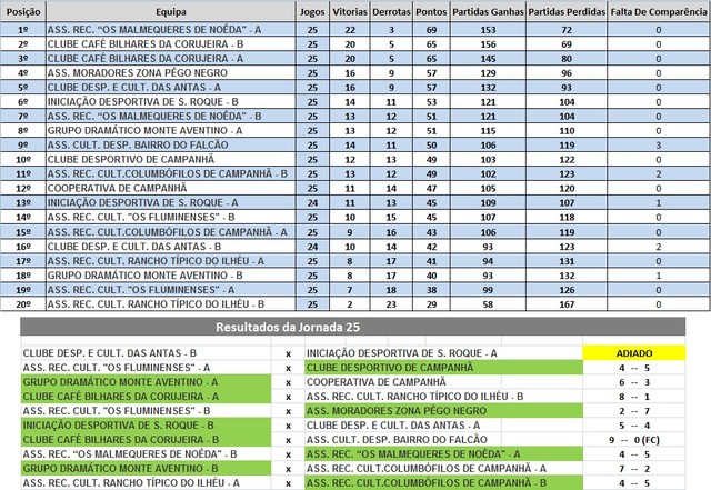 25a JORNADA - CAMPEONATO BILHAR / SNOOKER INTERASSOCIAÇÕES Ficou adiado o jogo entre CLUBE DESP. E CULT. DAS ANTAS - B x INICIAÇÃO DESPORTIVA DE S. ROQUE - A ATLETAS FEMININAS DA E X DE CAMPANHÃ - MUSAS NOS NACIONAIS < Anterior 3a EDIÇÃO DA VOLTA A CAMPANHÃ Seguinte >