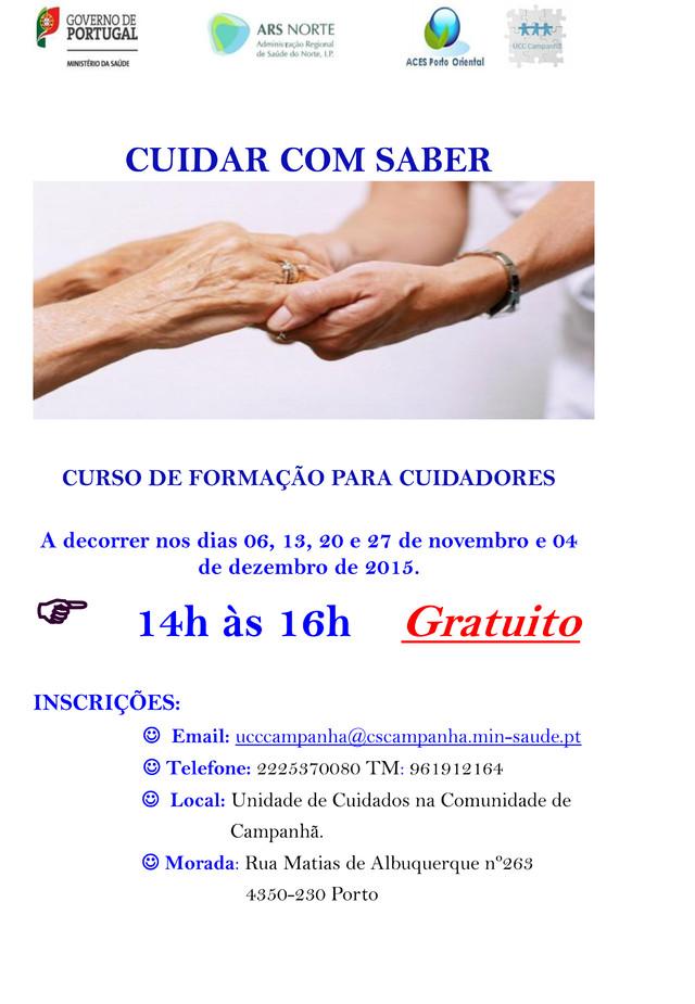 A Unidade de Cuidados na Comunidade de Campanhã, incluído no seu plano de ação promove o III curso de formação para cuidadores “Cuidar Com Saber” .