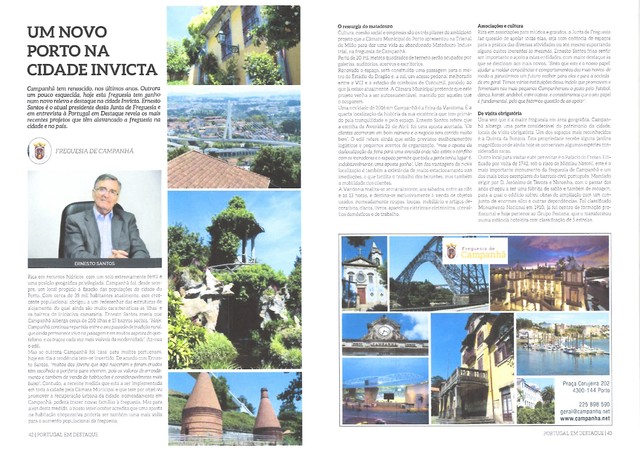 Ernesto Fortunato Santos, o Presidente da Junta de Freguesia de Campanhã concedeu uma entrevista à revista Portugal em Destaque, onde revelou os projetos que estão delineados para a Freguesia.