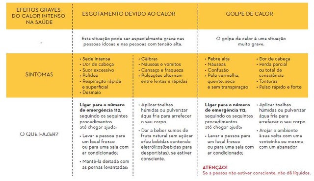 ? Se tiver algum sinal ou sintoma associados ao calor, procurar cuidados médicos de imediato