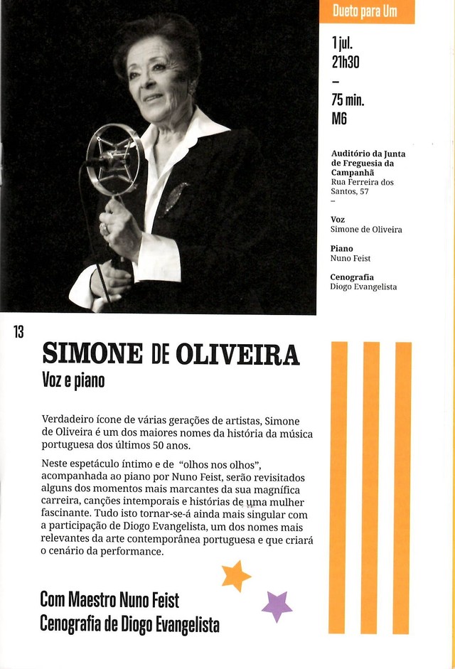 Verdadeiro ícone de várias gerações de artistas, Simone de Oliviera é um dos maiores nomes da história da música portuguesa dos últimos 50 anos.