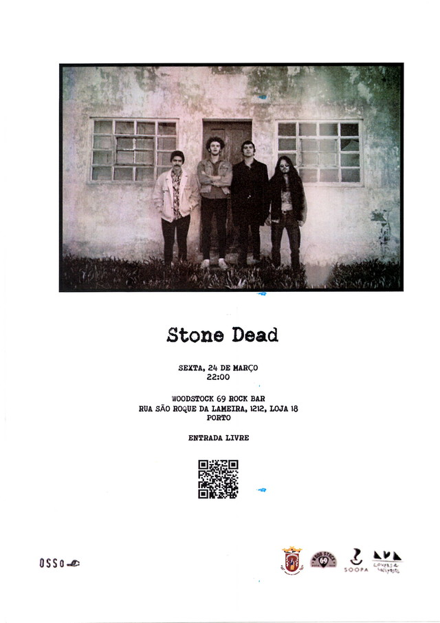 O grupo Stone Dead vai estar no próximo dia 24 de Março a partir das 22h no Woodstock 69 Rock Bar, situado em São Roque da Lameira, 1212, loja 18 (conhecidas Galerias de São Roque).