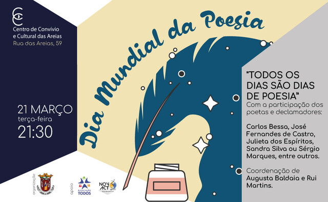 O evento, promovido pela Junta de Freguesia com o apoio do NOVO ACTO e da Associação TODOS, realiza-se no Centro de Convívio e Cultural das Areias e conta com a participação de poetas e declamadores bem conhecidos como Carlos Bessa, José Fernandes de Castro, Julieta dos Espíritos, Sandra Silva ou Sérgio Marques, entre outros, e coordenação de Augusta Baldaia e Rui Martins.