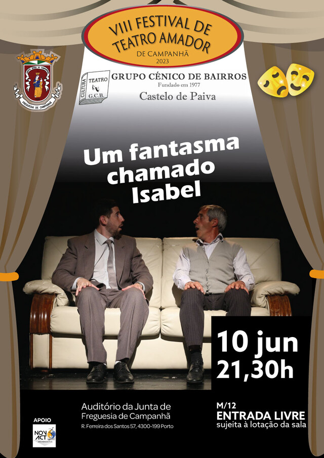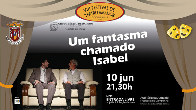 Depois de uma apreciada presença aquando da II edição do Festival de Teatro Amador de Campanhã, o Grupo Cénico de Bairros (Castelo de Paiva) regressa para apresentar a sua mais recente produção: "Um Fantasma chamado Isabel".