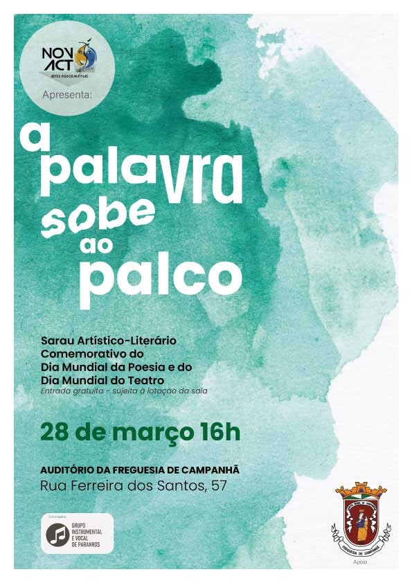 Um Sarau Artístico-Literário promovido pela Novo Acto Associação de Artes Performativas, com o apoio da Junta de Freguesia de Campanhã, assinala a comemoração, em simultâneo, do Dia Mundial da Poesia e do Dia Mundial do Teatro - efemérides que se celebram, respetivamente, a 21 e 27 de março.