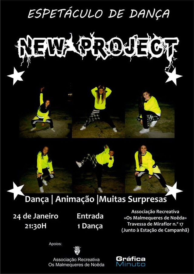 No próximo Sábado, dia 24 de Janeiro, pelas 21h30,, vai decorrer um espatáculo de dança em Noeda, Campanhã organizado pelo grupo de dança " New Project" com a participação de mais 18 grupos convidados.
