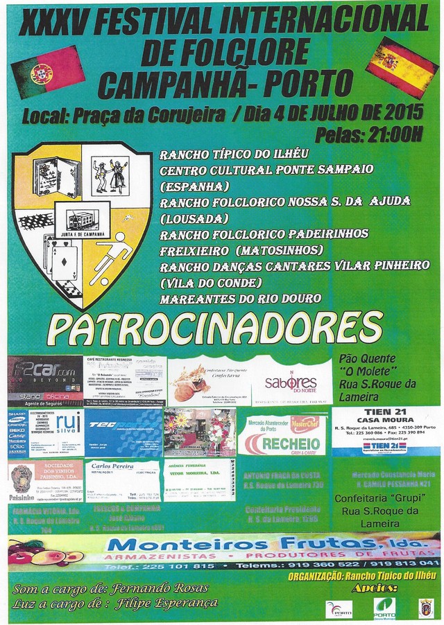 Amanhã, 04 de Julho, pelas 21h na Praça da Corujeira, vai decorrer o XXXV FESTIVAL INTERNACIONAL DE FOLCLORE CAMPANHÃ - PORTO.