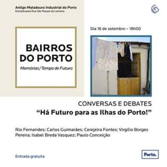 Amanhã, 16 de Setembro, a partir das 18h, fala-se sobre o futuro das ilhas do Porto, no auditório do antigo Matadouro Industrial do Porto, na rua de São Roque da Lameira, à Praça da Corujeira.