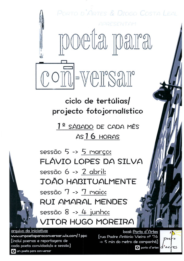 CICLO DE TERTÚLIAS - PORTO D'ARTES - POETA PARA CONVERSAR Durante o mês de Março, todos os sábados, no Porto D'Artes. AINDA ESTE FIM DE SEMANA NO MIRA < Anterior FEVEREIRO - ESTA SEMANA EM MIRAFLOR Seguinte >