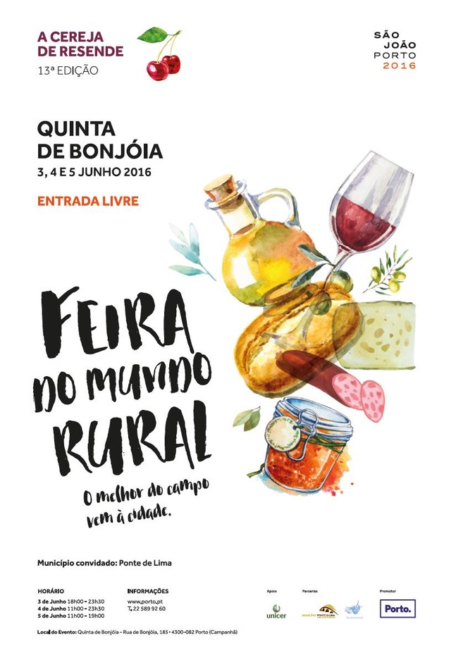 Nos próximos dias 3, 4 e 5 de junho vai decorrer a 13a Edição da Feira do Mundo Rural, na Quinta de Bonjóia. No primeiro dia, o evento começa às 18h e termina às 23h30, o segundo dia arranca às 11h e encerra às 23h30, o último dia, inicia às 11h até às 19h. Entrada livre.