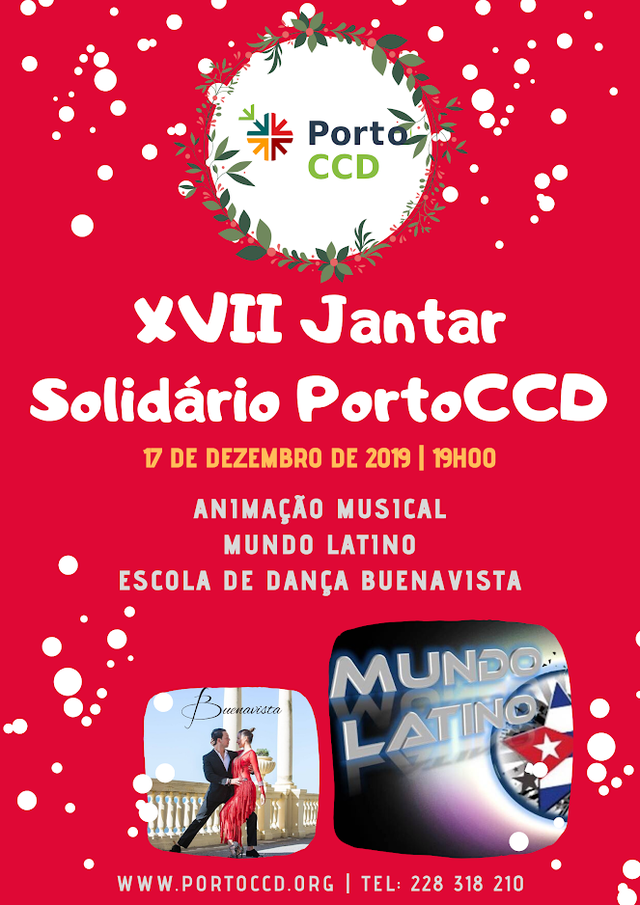 Este ano, à semelhança de anos anteriores, vamos realizar, dia 17 de dezembro (terça-feira), um Jantar Solidário para os sem-abrigo e pessoas carenciadas da cidade do Porto. Esta ceia, como é habitual, realizar-se-á nas instalações do CCDTCMPorto, pelas 19h00.