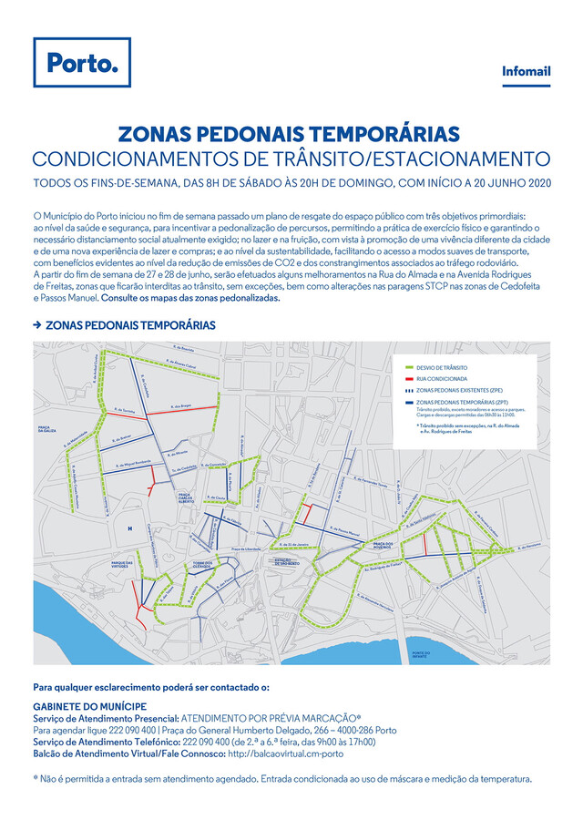 Foram efetuados alguns melhoramentos de funcionamento na Rua do Almada e na Avenida Rodrigues de Freitas. Assim sendo, a partir de 27 de junho, nos fins de semana as duas vias passam a estar totalmente condicionadas à circulação do trânsito automóvel sem exceções, ficando interditas todas as deslocações de transportes públicos, as cargas e descargas de transportes de mercadorias, os acessos dos moradores e ainda dos estacionamentos. Consequentemente, haverá também alterações nas paragens STCP que se encontram nestas duas ruas.
