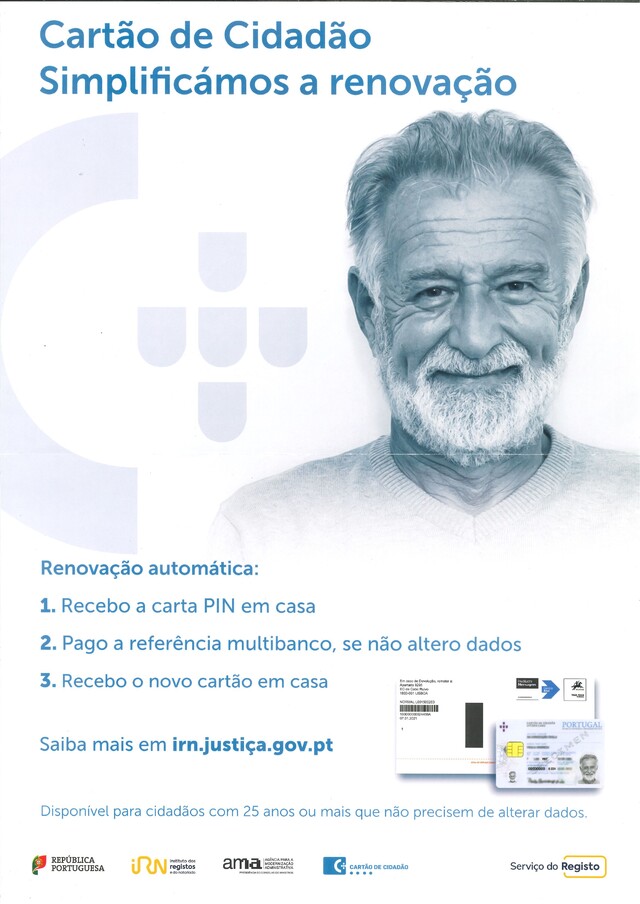 Desde 5 de maio que os cidadãos com 25 anos ou mais, residentes em Portugal e não sujeitos ao regime do maior acompanhado podem renovar o seu Cartão de Cidadão de forma automática, desde que não pretendam fazer alteração de dados.