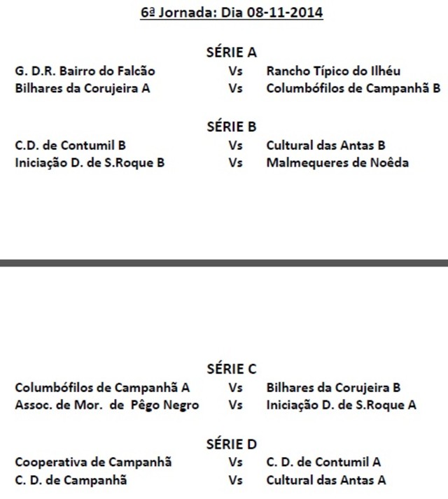 6a Jornada Campeonato Bilhar/Snooker O campeonato de Bilhar / Snooker prossegue e vai ja a meio do campeonato, bastante dispotado.