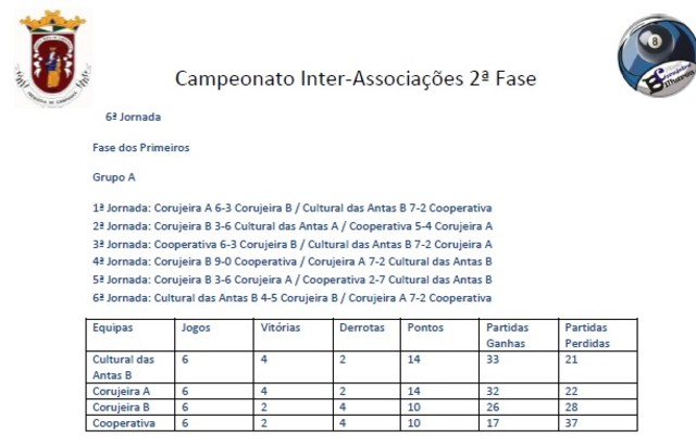 Grupo A - Fase dos Primeiros Último Torneio do Campeonato de Bilhar / Snooker Resultados do Grupo A - Fase dos Primeiros Grupo B - Fase dos Primeiros Último Torneio de Bilhar / Snooker < Anterior FASE DOS ÚLTIMOS -GRUPO B Campeonato Bilhar / Snooker Seguinte >