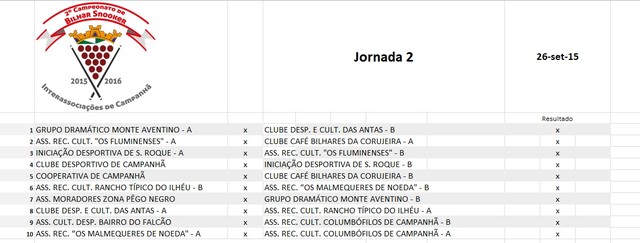 Calendário 2ª Jornada - 2º Campeonato Bilhar/Snooker Interassociações de Campanhã