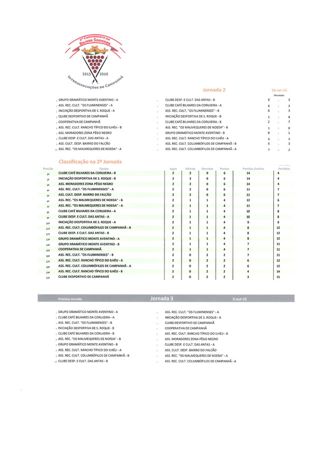 RESULTADOS 2ª JORNADA CAMPEONATO BILHAR/ SNOOKER INTERASSOCIAÇÕES DE CAMPANHÃ
