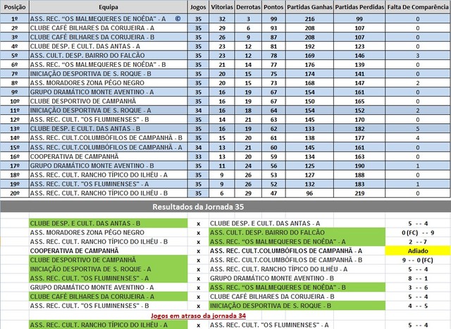* O Jogo que Ficou adiado entre COOPERATIVA DE CAMPANHÃ x ASS. REC. CULT.COLUMBÓFILOS DE CAMPANHÃ - A