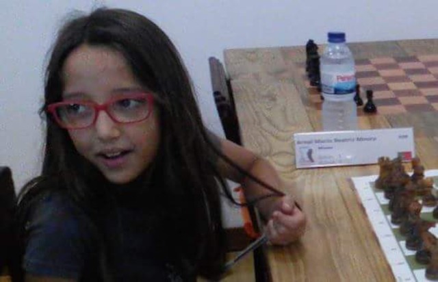 A Escola de Xadrez de Campanhã esteve representada nos Nacionais Jovens de semi-rápidas por Beatriz Areal, que deu continuidade à boa forma recente somando 3.5/7 (6ª feminina) e somou 1.5 contra os 5 adversários com elo que defrontou (média 1153), o que deve originar um bloco. Mas a frieza dos números esconde que a Beatriz esteve na luta pelo titulo. Nos 3 jogos da manhã a Beatriz ganhou com alguma facilidade aos adversários sem elo que enfrentou (Martin Sousa do GX Alekhine e Nuno Vasconcelos, da AX Gaia) tendo perdido com Lucas Gonçalves (que já foi campeão nacional de rápidas em sub-8 e viria a ficar em terceiro na geral). Na quarta jornada enfrentou Afonso Oliveira (1141) de Brancas e o empate permitiu-lhe isolar-se no segundo lugar feminino. Na quinta enfrentou a Campeã Nacional sub-8 (clássicas, 2016; elo 1160), Clara Couto e perdeu um jogo onde teve vantagem e que a ter ganho a teria colocado em excelente posição para conquistar a taça. Mas reagiu bem, batendo de seguida Catarina Pereira, outra campeã nacional (clássicas, 2015; elo 1156). Chega à ultima jornada com 3.5/6 em 4º feminino e tem por adversária outra campeã nacional, Mafalda Avelino (elo 1093). A apenas meio ponto das primeiras, pode aspirar ainda aos 3 primeiros lugares, se as adversárias não vencerem. Infelizmente, o jogo equilibrado cai para o lado da atleta de Lisboa, que já participou em Europeus e Mundiais, e a Beatriz não pôde aproveitar as derrotas de duas das atletas à sua frente, ficando à distância de uma vitória neste jogo do segundo lugar feminino. Um torneio memorável e de grandes emoções.
