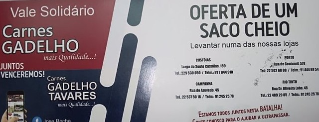 A Junta de Freguesia de Campanhã, agradece ao Sr. José Rocha, responsável pelos Talhos Gadelho Tavares, a oferta de 8 vouchers, para que a Autarquia distribuísse por famílias da Freguesia que viram os seus rendimentos reduzidos devido à infeção pelo Covid19.