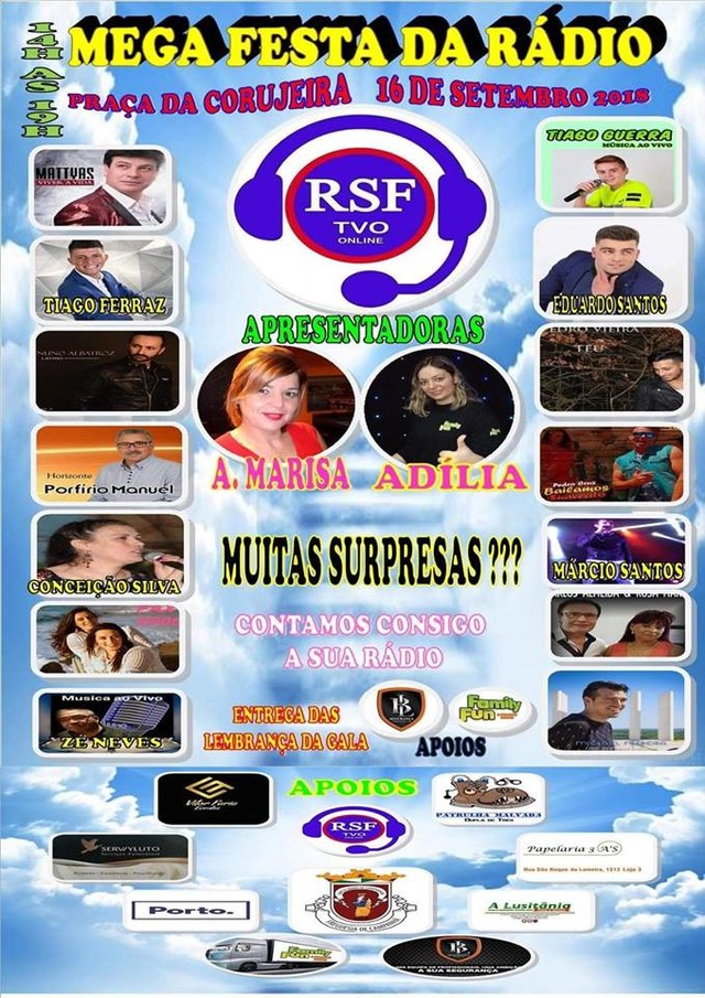 Mega Festa da Rádio Praça da Corujeira 16 de setembro 14h00 - 19h00 Galerias MIRA comemoram o 5º aniversário < Anterior FPAS - Formação para Intérpretes de LGP 2018 Seguinte >