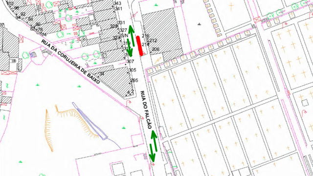 — Rua do Falcão, no troço compreendido entre o nº. 206 e o nº. 216 — “Cemitério de Campanhã”.
