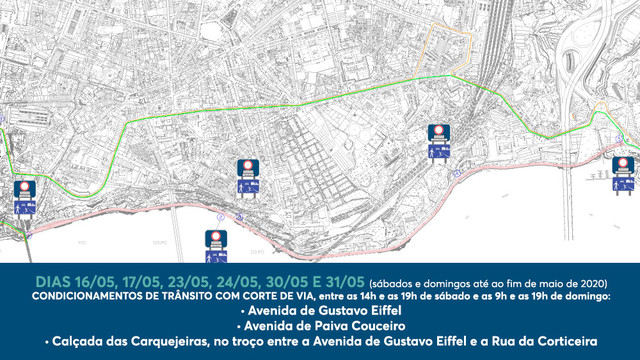 Condicionamentos de trânsito com corte de via, entre as 14h e as 19h de sábado e as 9h e as 19h de domingo:
