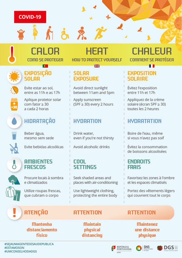 Cartaz em PDF - DGS "Proteger do calor - Protect from the heat - Protéger du chaleur"