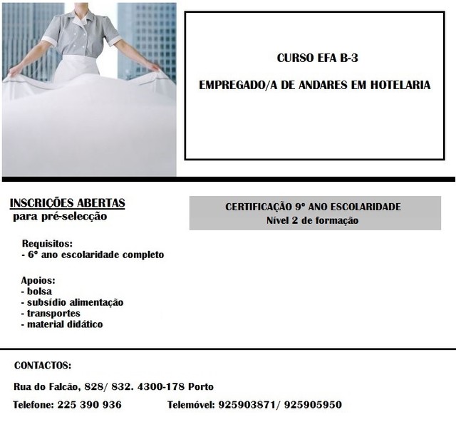 CURSO EFA B3 - EMPREGADO/A DE ANDARES EM HOTELARIA